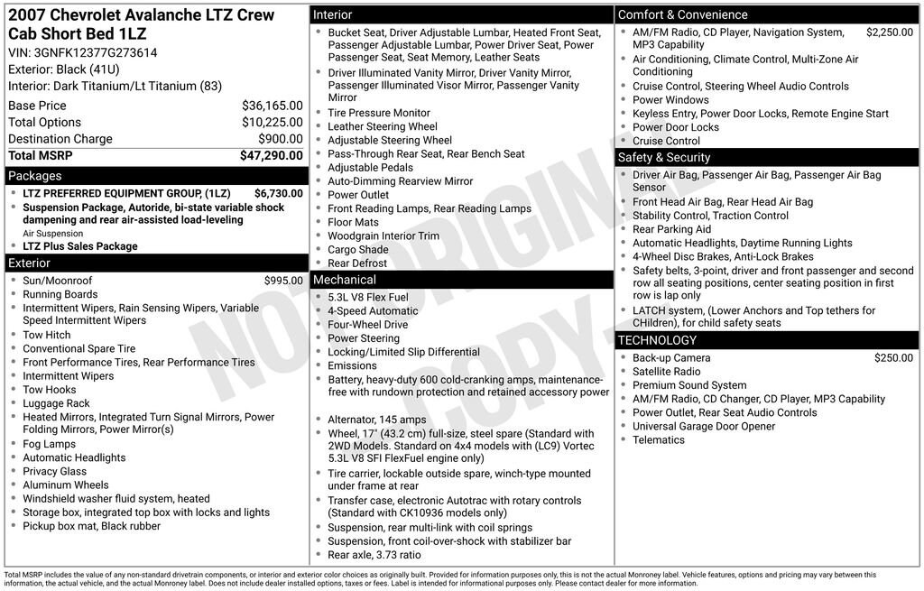 Black 2007 Chevrolet Avalanche 1500 LTZ Odometer is 64267 miles below market average! Leather Seats, Sunroof/Moonroof, Navigation System, Backup Camera, Recent Oil Service, Fully Detailed, Remote Keyless Entry, Heated Seats, Remote Vehicle Starter, Premium Audio, ACCIDENT FREE AUTOCHECK. .....MORE and MORE... it's BEARDMORE.Located in Bellevue, but serving the greater Omaha areas, including La Vista, Papillion, Millard, Council Bluffs, Lincoln and Plattsmouth. Se Habla Espanol! Need Financing? Come see what the Finance Specialists can do for you. All Apps Accepted. Good Credit, Bad Credit, Not Credit, No Problem.15/20 City/Highway MPG4D Crew Cab 2007 Chevrolet Avalanche 1500 LTZ 4WD Vortec 5.3L V8 SFI Flex Fuel 4-Speed Automatic with Overdrive