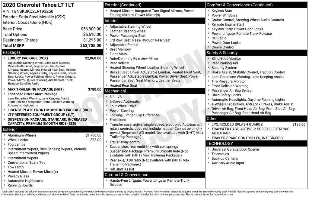 4D Sport Utility 2020 Chevrolet Tahoe LT 4WD EcoTec3 5.3L V8 6-Speed Automatic Electronic with Overdrive