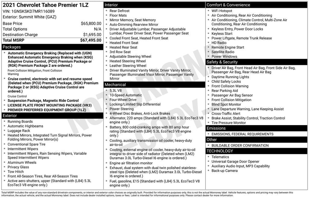 Certification Program Details: Beardmore Certified Vehicles include a 6 month or 6,000 miles limited warranty and a 2 year or 100,000 mile powertrain warranty.Summit White 2021 Chevrolet Tahoe Premier Certified. Priced below KBB Fair Purchase Price! Odometer is 28035 miles below market average! Leather Seats, Bluetooth, Backup Camera, Recent Oil Service, Fully Detailed, Remote Vehicle Starter, Steering Wheel Controls, ACCIDENT FREE AUTOCHECK. .....MORE and MORE... it's BEARDMORE.Beardmore Certified with 6 month or 6,000 miles of warranty and 2 years or 100,000 miles of power train warranty. Located in Bellevue, but serving the greater Omaha areas, including La Vista, Papillion, Millard, Council Bluffs, Lincoln and Plattsmouth. Se Habla Espanol! Need Financing? Come see what our Finance Specialists can do for you. All Apps Accepted. Good Credit, Bad Credit, Not Credit, No Problem.16/20 City/Highway MPG4D Sport Utility 2021 Chevrolet Tahoe Premier 4WD EcoTec3 5.3L V8 10-Speed Automatic with OverdriveAwards:* JD Power Automotive Performance, Execution and Layout (APEAL) Study * ALG Residual Value