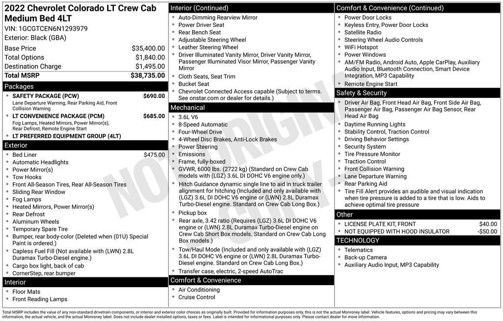 Black 2022 Chevrolet Colorado LT Certified. Bluetooth, Backup Camera, Recent Oil Service, Fully Detailed, Remote Keyless Entry, Remote Vehicle Starter, Steering Wheel Controls, ACCIDENT FREE AUTOCHECK. .....MORE and MORE... it's BEARDMORE.