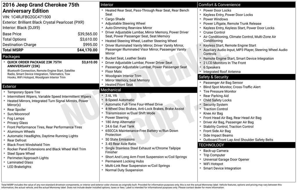 Used 2016 JeepGrand Cherokee Limited 75th Anniversary