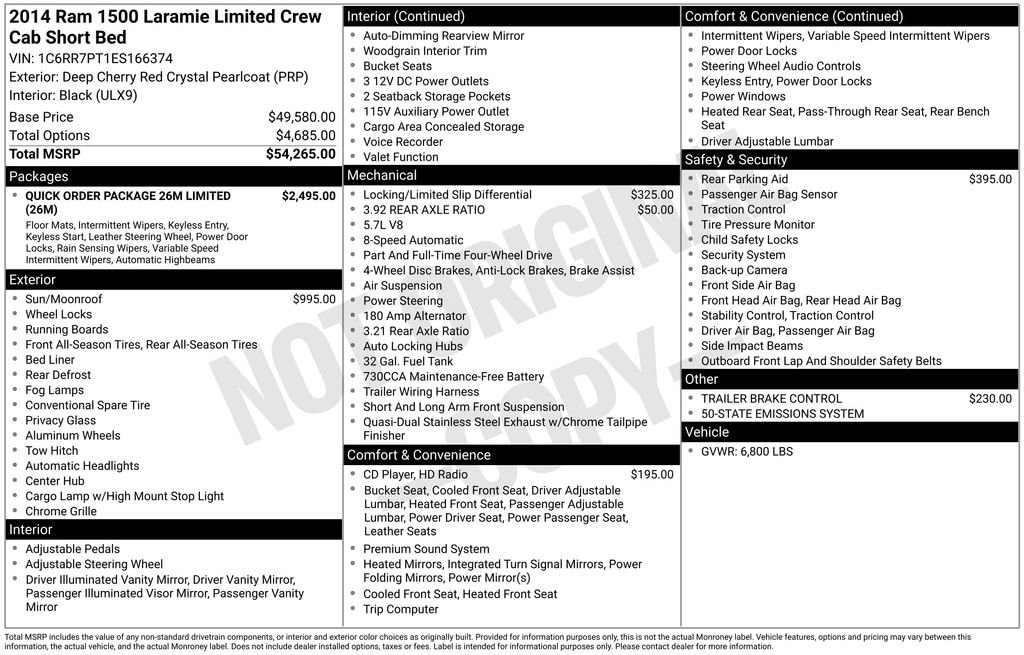 4D Crew Cab 2014 Ram 1500 Laramie Longhorn 4WD HEMI 5.7L V8 Multi Displacement VVT 8-Speed Automatic
